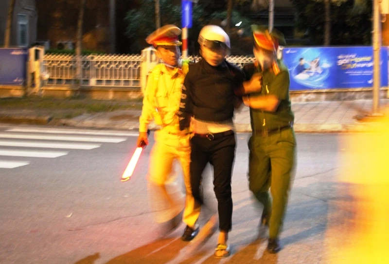 Trong tối 25-4, tổ tuần tra đã lập biên bản 16 trường hợp vi phạm. Trong đó có một ô tô vi phạm nồng độ còn; bảy trường hợp là thanh thiếu niên.