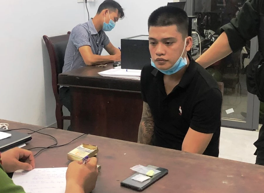 Nghi phạm Hồ Tấn Đại Nghĩa cùng số ma túy bị phát hiện. Ảnh: H.H