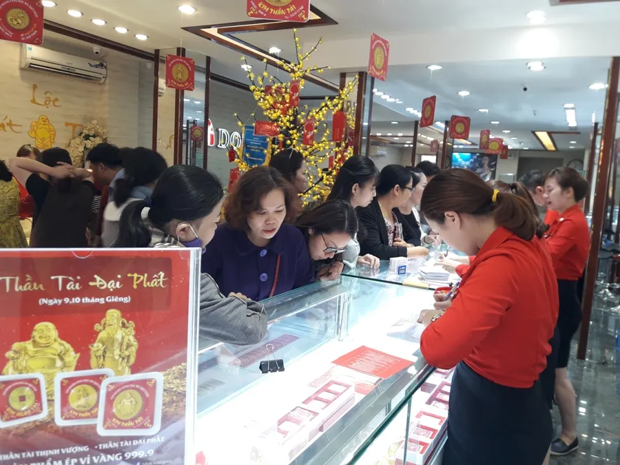 Người dân nhộn nhịp đến mua vàng lấy vía ngày Thần Tài. Ảnh: TÂM AN.