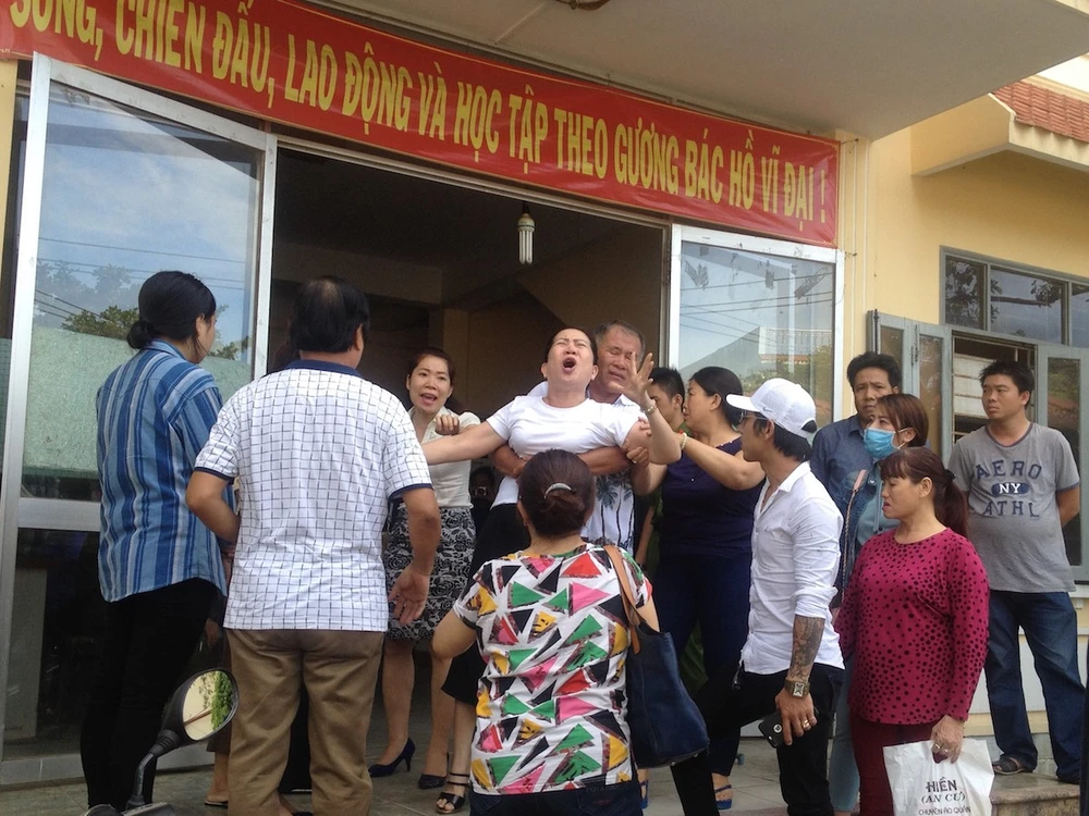 Mẹ của bị cáo Tuấn vừa khóc vừa la hét: “Đã một năm rưỡi rồi, con tôi vô tội, tại sao vẫn giam nó”.