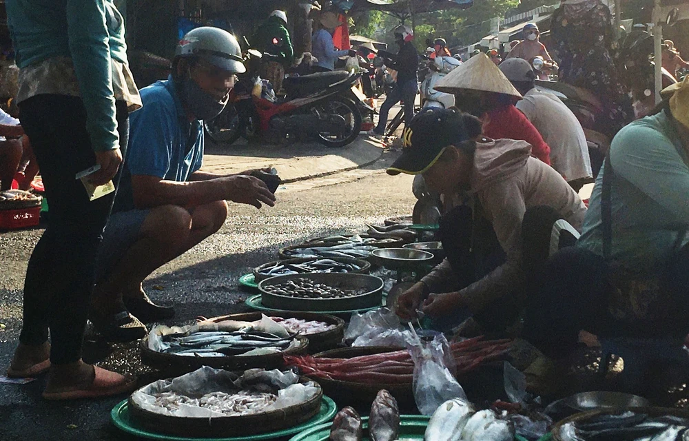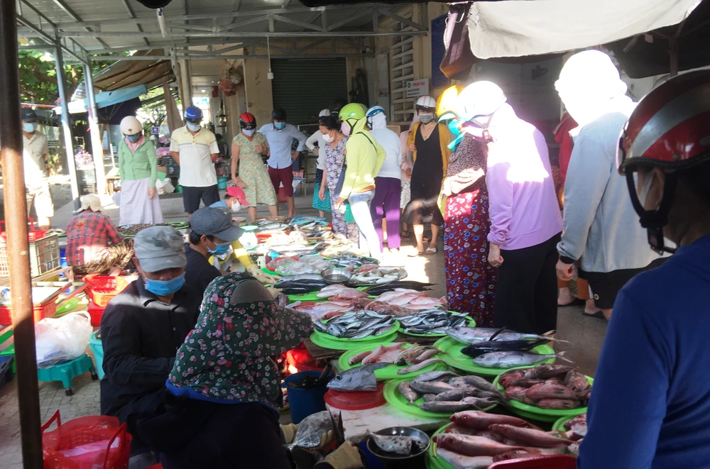 Còn tại chợ Nguyễn Tri Phương (quận Hải Châu), người dân chấp hành việc đeo khẩu trang nhưng người mua và người bán san sát nhau.