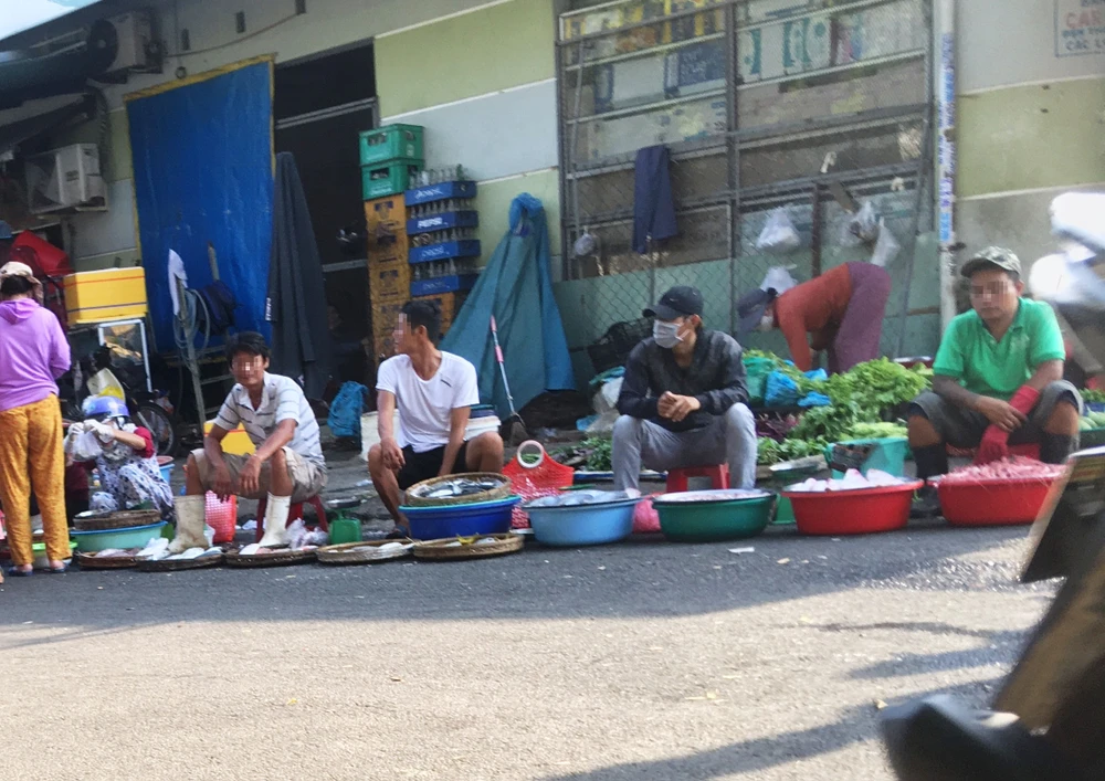 Những người buôn bán lấn chiếm lòng lề đường này không đeo khẩu trang.