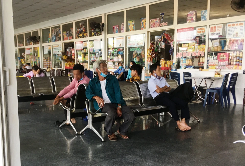 Nhiều người ngồi trong nhà chờ đông người nhưng vẫn không đeo khẩu trang hoặc kéo khẩu trang xuống.