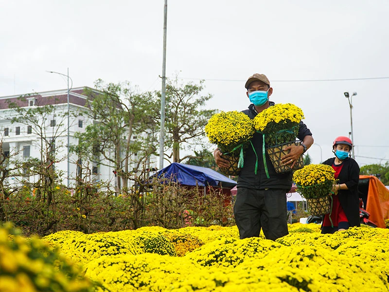 Ông Đinh Tám chở gần 200 chậu mai cảnh từ Bình Định ra chợ hoa xuân Đà Nẵng bán nhưng cho biết cây mai phát triển tốt, hoa nở vào đúng dịp tết. Giá bán mỗi chậu mai dao động từ 3 triệu đến 20 triệu đồng.