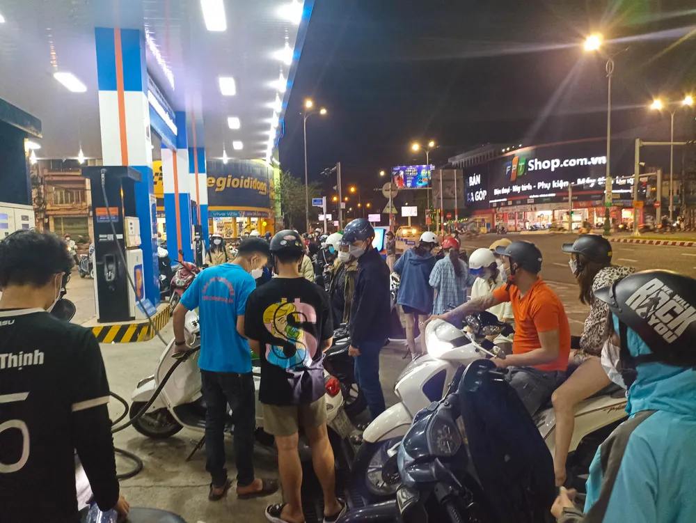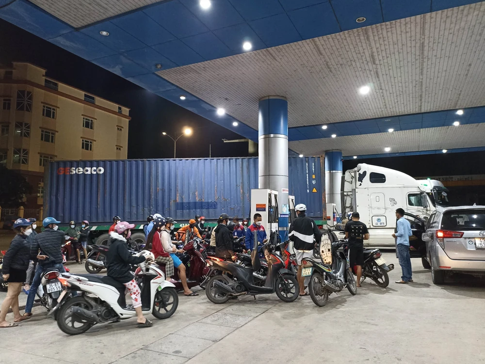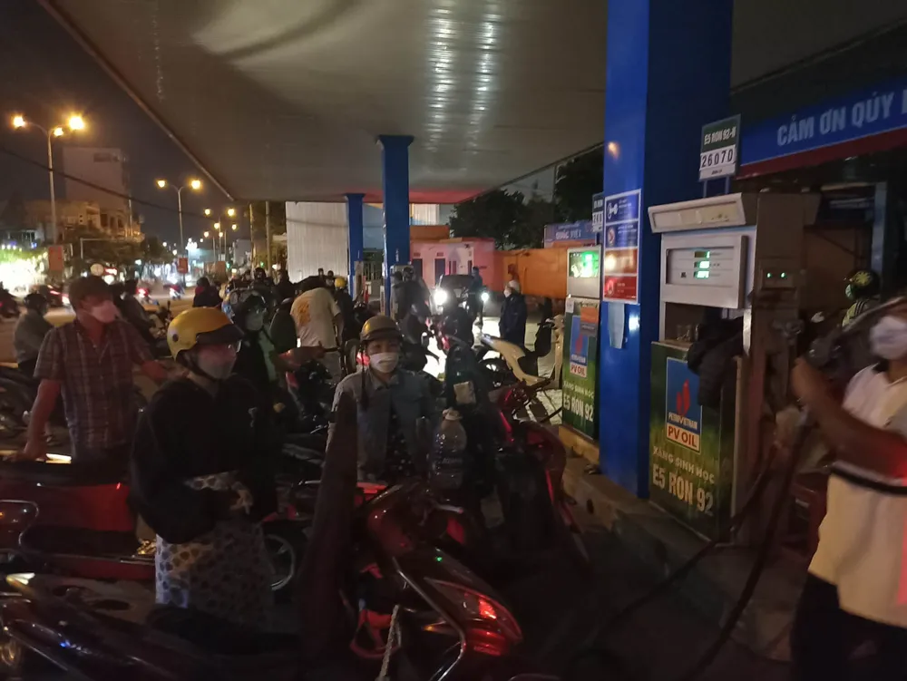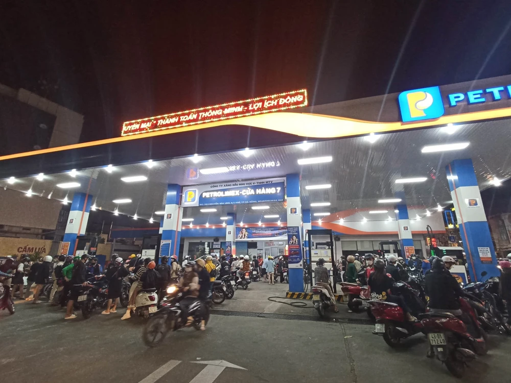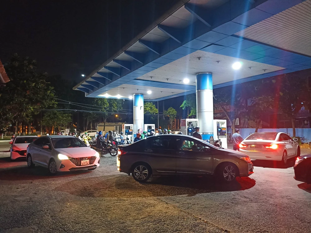 Khoảng 21 giờ ngày 10-3, tại các cây xăng tại quận Liên Chiểu, quận Thanh Khê, quận Hải Châu,... (TP Đà Nẵng) đều đông nghịt khách đến đổ xăng. Một số cây xăng, người dân phải xếp hàng gần nửa tiếng mới đến lượt đổ.