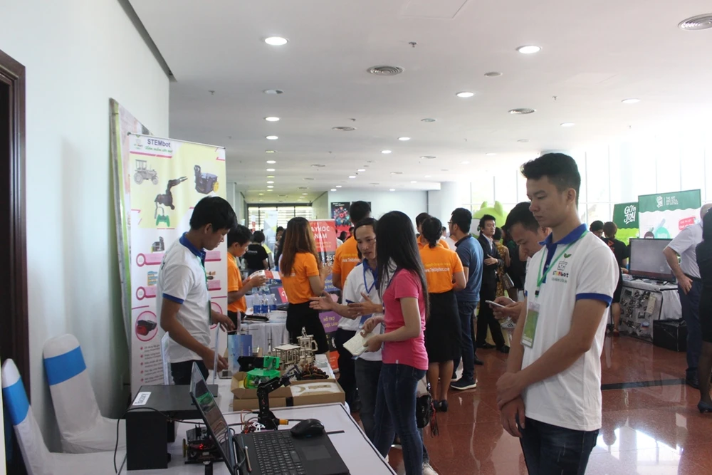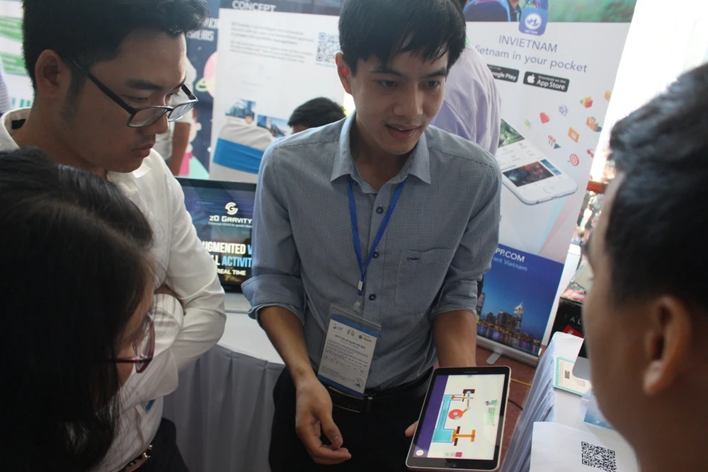 Một startup giới thiệu sản phẩm với khách tham quan tại SURF 2018