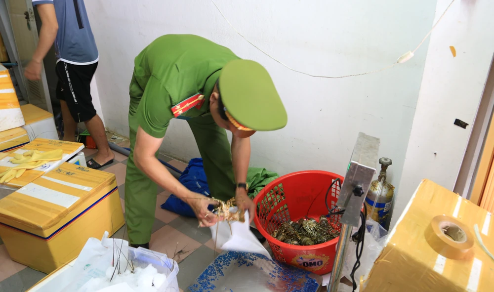 Ngày 22-10, nguồn tin từ Ban quản lý an toàn thực phẩm TP Đà Nẵng cho biết đơn vị vừa phối hợp với Phòng Cảnh sát môi trường (Công an TP Đà Nẵng) lấy mẫu tôm hùm tại cửa hàng hải sản TN (đường Hoàng Hoa Thám, quận Thanh Khê, TP Đà Nẵng) gửi kiểm nghiệm, đánh giá nguồn, chất lượng tôm mà cửa hàng này nhập về.