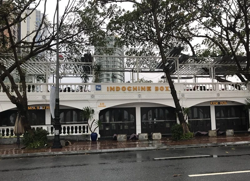 Một quán cà phê ven sông Hàn đóng cửa từ sáng nay để tránh bão.