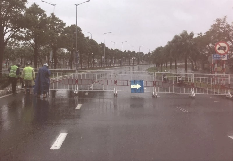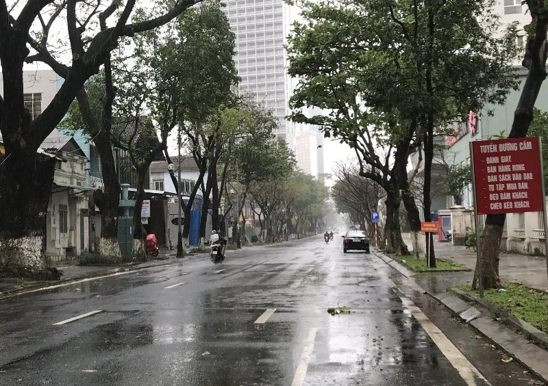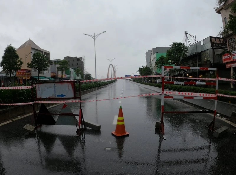 Rất hiếm phương tiện di chuyển trên đường vào lúc này. Các cây cầu bắc qua sông Hàn, cầu vượt Ngã ba Huế cũng đã được đóng lại, cấm người qua lại.