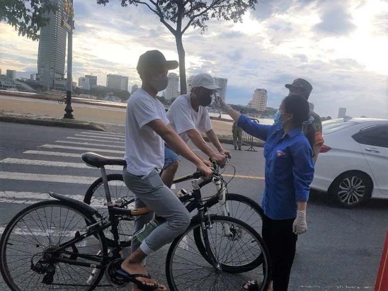 Nhiều người ra đường với lý do không cần thiết được các tổ phòng chống dịch cộng đồng đô thân nhiệt, khuyên trở về nhà. Ảnh: NHĐ