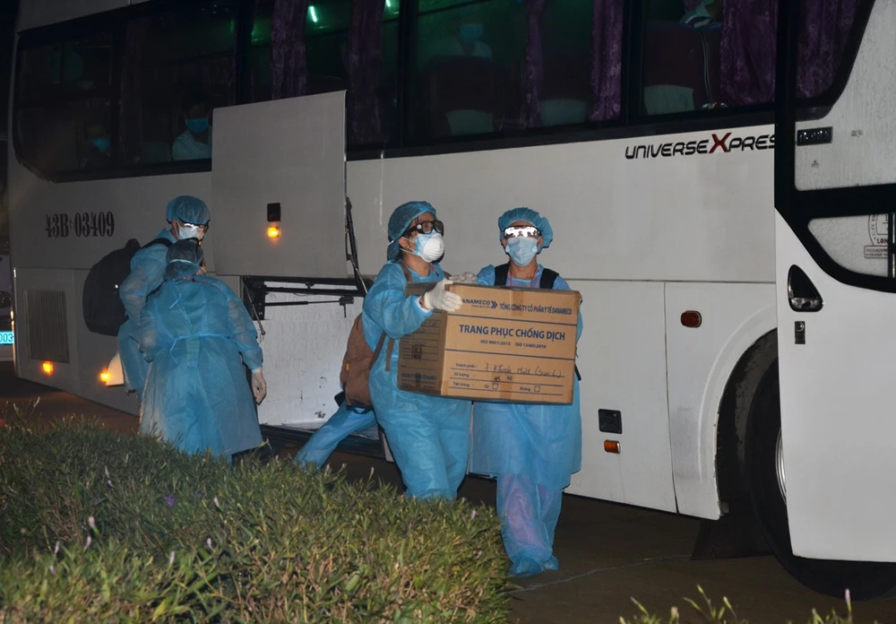 Tối 31-7, xe khách chở 300 người thuộc diện cách ly đến Tiểu đoàn 11, Sư đoàn 375, Quân chủng Phòng không – Không quân từ bện viện Đà Nẵng.