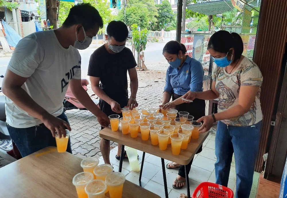 Nhóm ông Hiếu đóng hộp thức ăn, nước uống chuẩn bị đem đến nơi cần miễn phí.