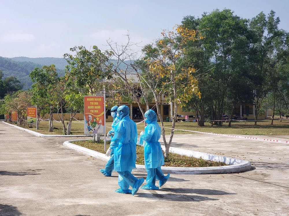Nhân viên y tế làm nhiệm vụ tại khu vực cách ly tập trung ở huyện Hòa Vang (Đà Nẵng). Ảnh: T.AN