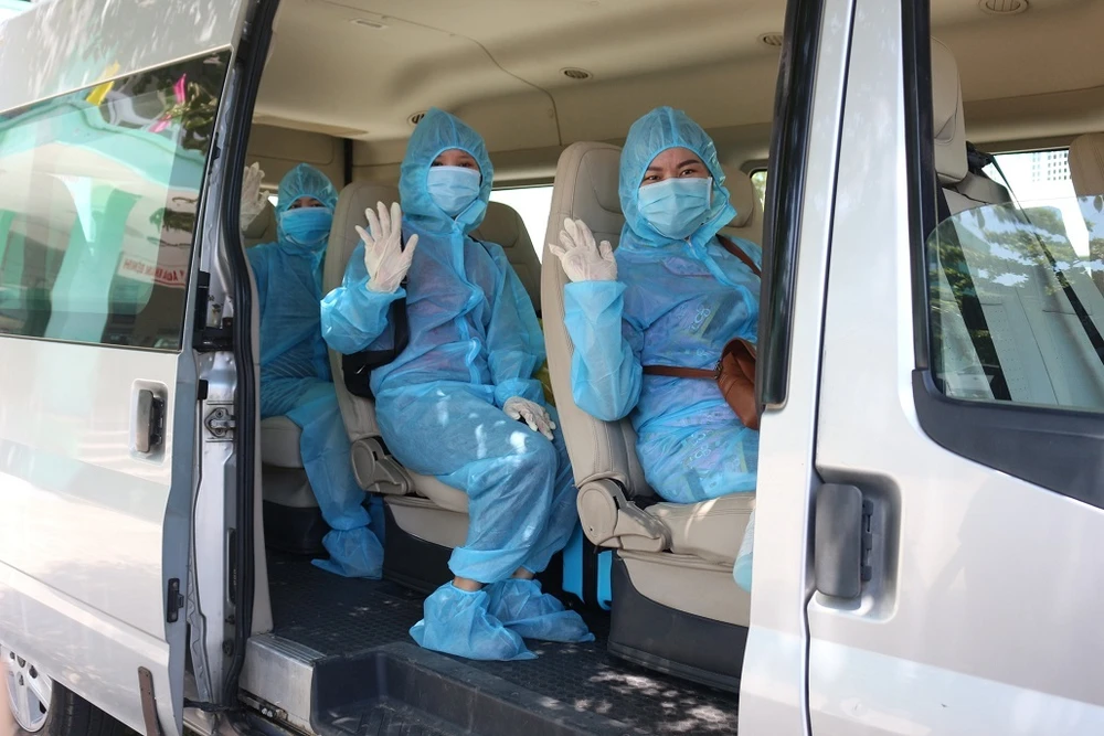 Bệnh nhân COVID-19 được bố trí xe đưa về tận nhà sau khi điều trị khỏi bệnh. Ảnh: T.AN