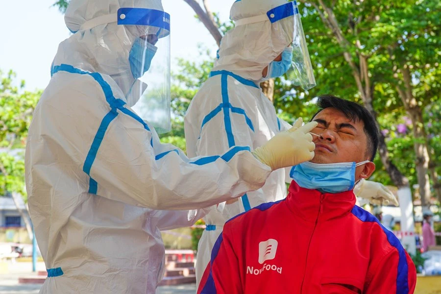 Xét nghiệm COVID-19 cho shipper tại Đà Nẵng. Ảnh: BÙI TOÀN