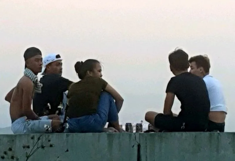 Người dân tập trung ra đây chủ yếu để thả diều, ngồi hóng gió, bày bàn nhậu và nhiều người không đeo khẩu trang.