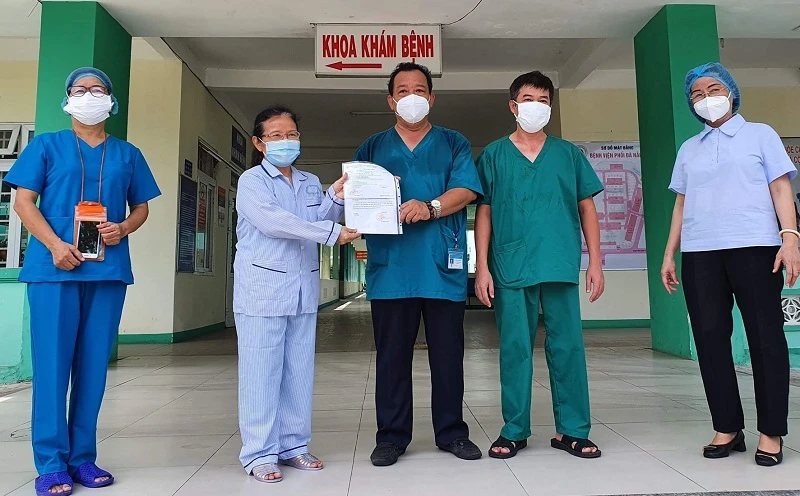 Đây là bệnh nhân 445 TTNH (nữ, 61 tuổi, trú phường Hòa Thuận Đông, quận Hải Châu), sau thời gian điều trị và xét nghiệm 3 lần âm tính với SARS-CoV-2.