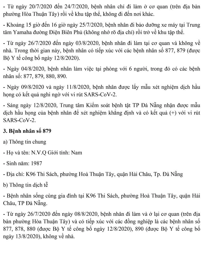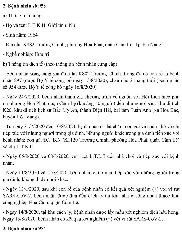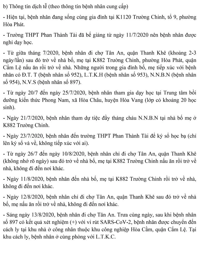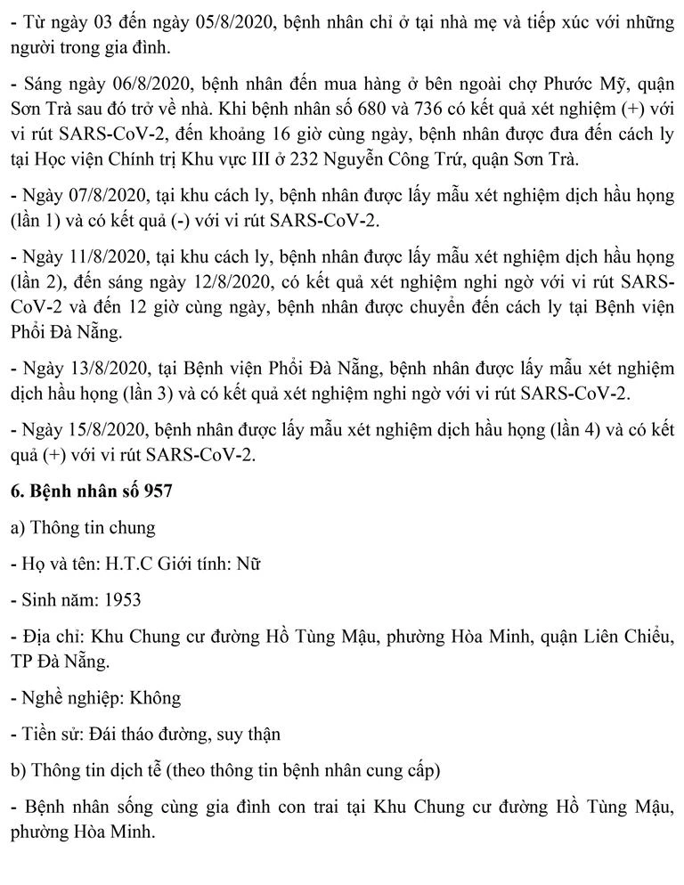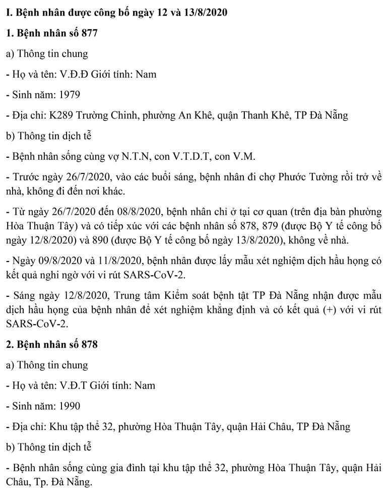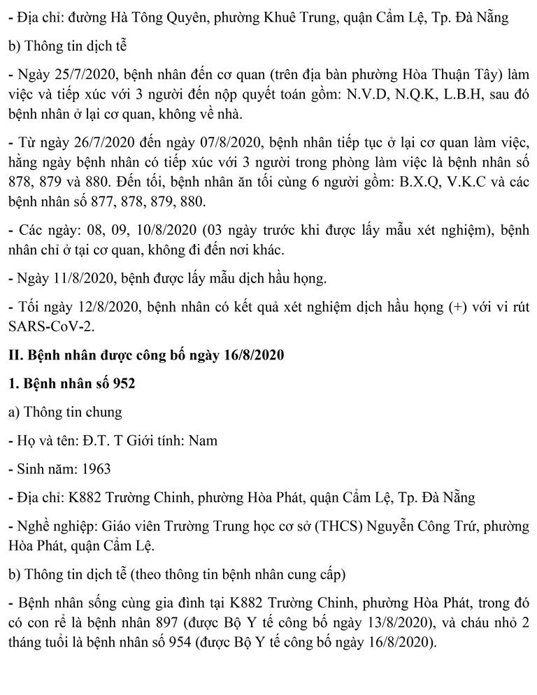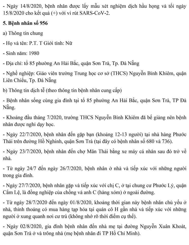 Ngày 17-8, Ban chỉ đạo Phòng chống dịch COVID-19 TP Đà Nẵng đã cung cấp thông tin điều tra, giám sát, xử lý năm trường hợp còn lại mắc COVID-19 được công bố ngày 12 và 13-8 và 8/8 trường hợp công bố ngày 16-8.