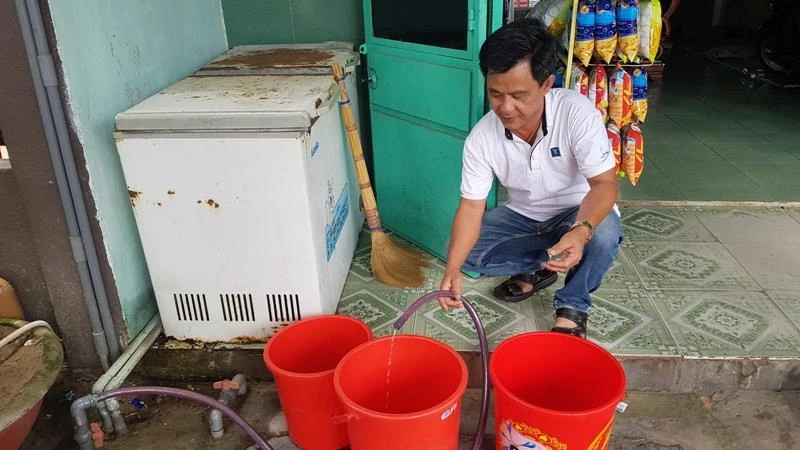 Sáng 21-5, ông Huỳnh Văn Đàn (ngụ phường Nại Hiên Đông, quận Sơn Trà) ngồi thu lu bên vòi nước trước nhà để hứng nước. Dù ông mở van tối đa nhưng vẫn không có giọt nước nào chảy ra. Ông Đàn tỏ ra vô cùng bức xúc: “Họ (Dawaco - PV) nói đến 24h ngày 18-5 có nước trở lại, mà giờ ngày 21-5 rồi vẫn chưa có. Người dân ở đây phải qua nhà người thân chỗ khác để xin từng xô về sinh hoạt”.