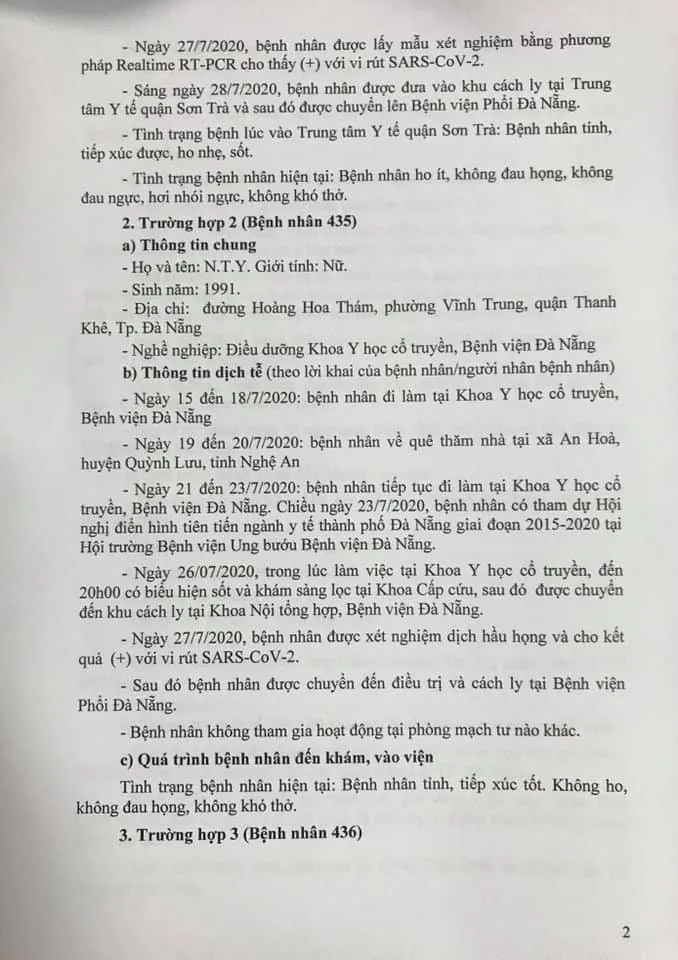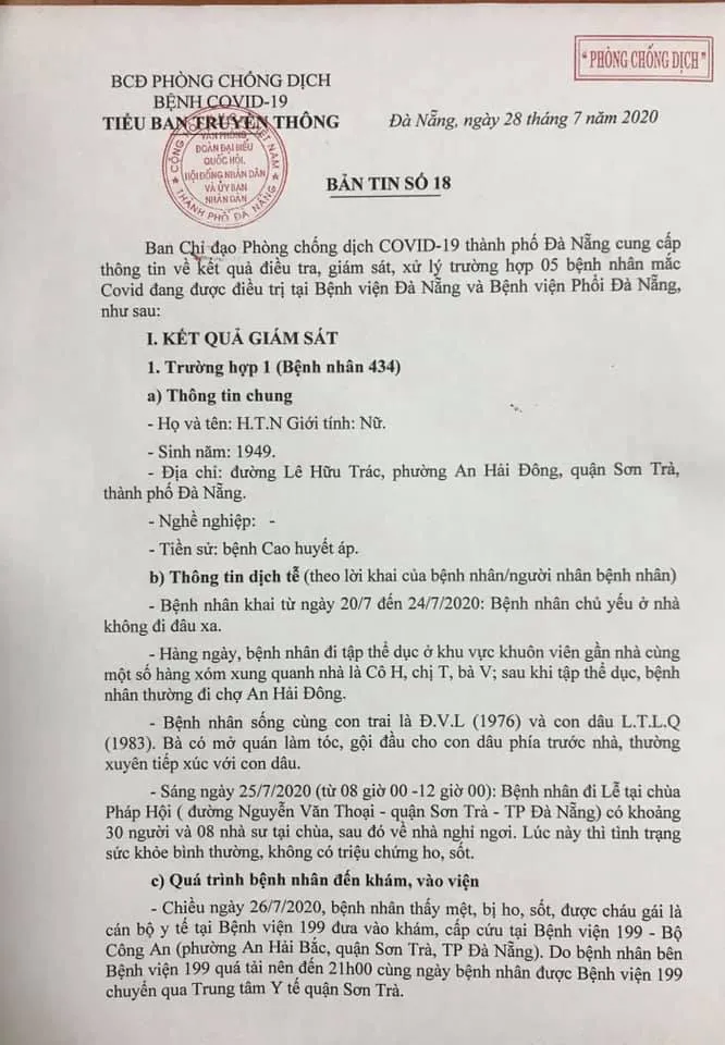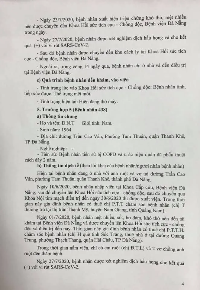 Tối 28-7, Ban Chỉ đạo Phòng chống dịch COVID-19 TP Đà Nẵng cung cấp thông tin về kết quả điều tra, giám sát, xử lý năm bệnh nhân mắc COVID-19 đang điều trị tại Đà Nẵng.