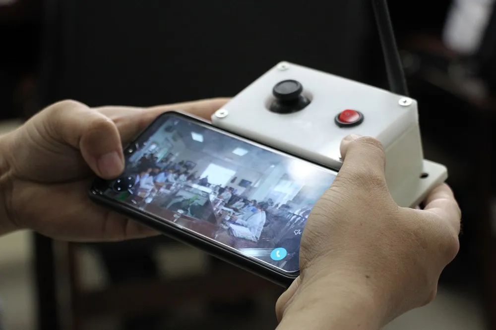 Robot lắp đặt camera nên nó có thể kết nối với 10 máy điện thoại để theo dõi toàn bộ quá trình vận hành. Ảnh: HĐ