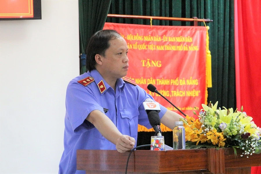 Ông Lê Tiến, Viện trưởng VKSND TP Đà Nẵng, phát biểu tại hội nghị. Ảnh: T.AN