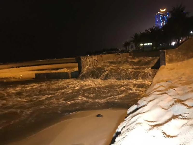 Nước thải đen ngòm tuồn ra biển sau mưa. Ảnh: HẢI HIẾU