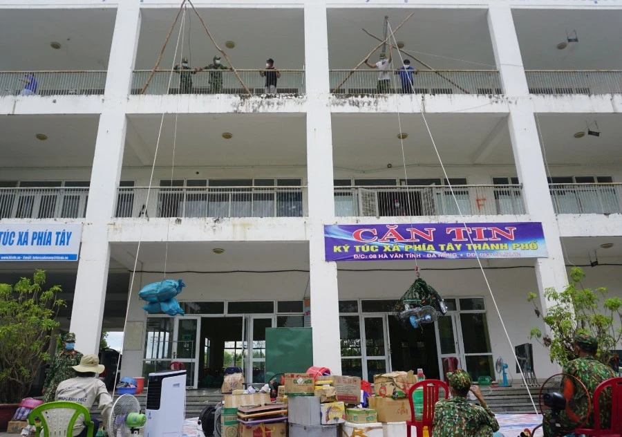 Sinh viên ở ký túc xá phía Tây thu dọn đồ đạc, nhường chỗ cho ngành y tế Đà Nẵng thành lập bệnh viện dã chiến. Ảnh: TV
