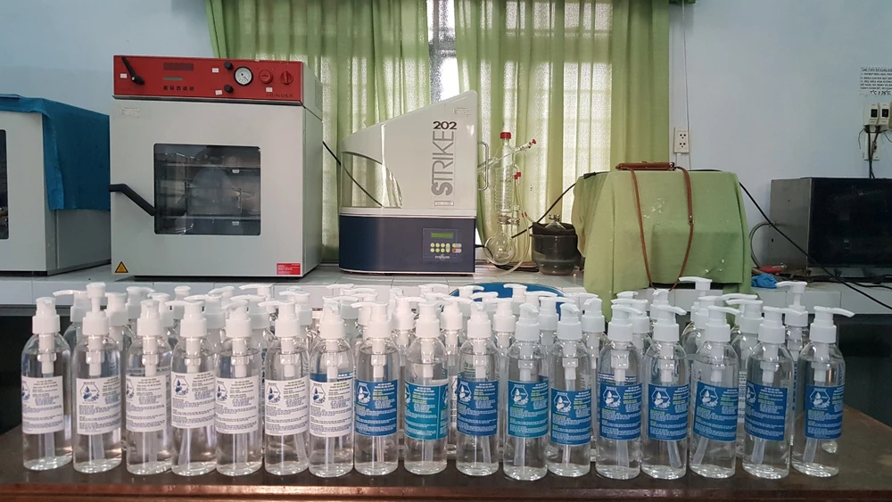 Việc pha chế dung dịch rửa tay được tiến hành theo hướng dẫn của Tổ chức Y tế Thế giới (WHO) và Bộ Y tế và được tiến hành trong phòng thí nghiệm của trường.