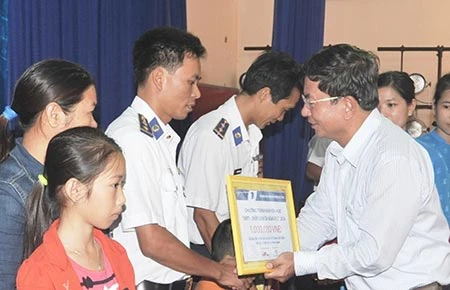 Trao học bổng cho con em chiến sĩ cảnh sát biển. (Ảnh do Cảnh sát biển Vùng 2 cung cấp)