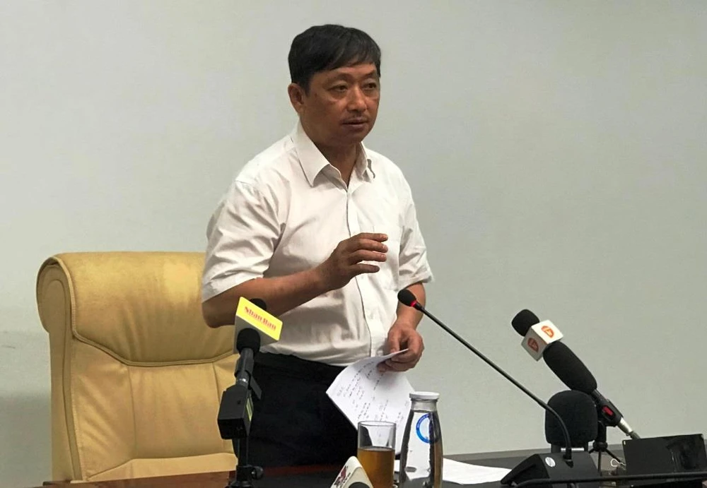Ông Đặng Việt Dũng phát biểu kết luận cuộc họp về xử lý việc thiếu nước sạch của TP Đà Nẵng. Ảnh: HẢI HIẾU