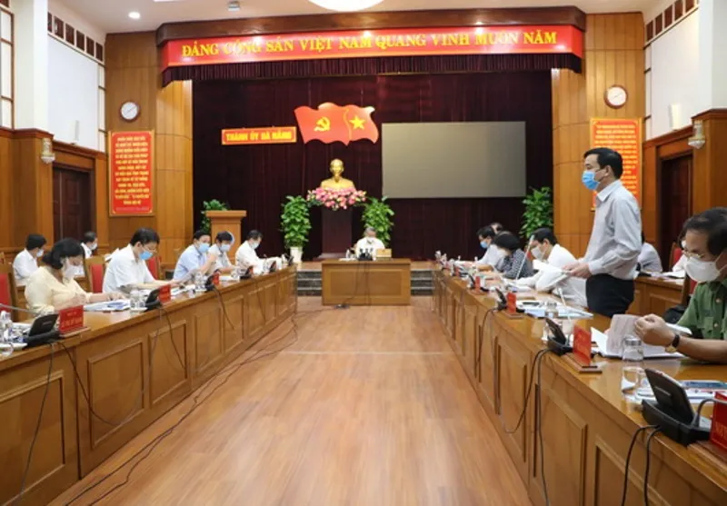 Ban Thường vụ Thành ủy Đà Nẵng họp sáng 28-8 về phòng chống dịch COVID-19 trong tình hình mới. Ảnh: TH