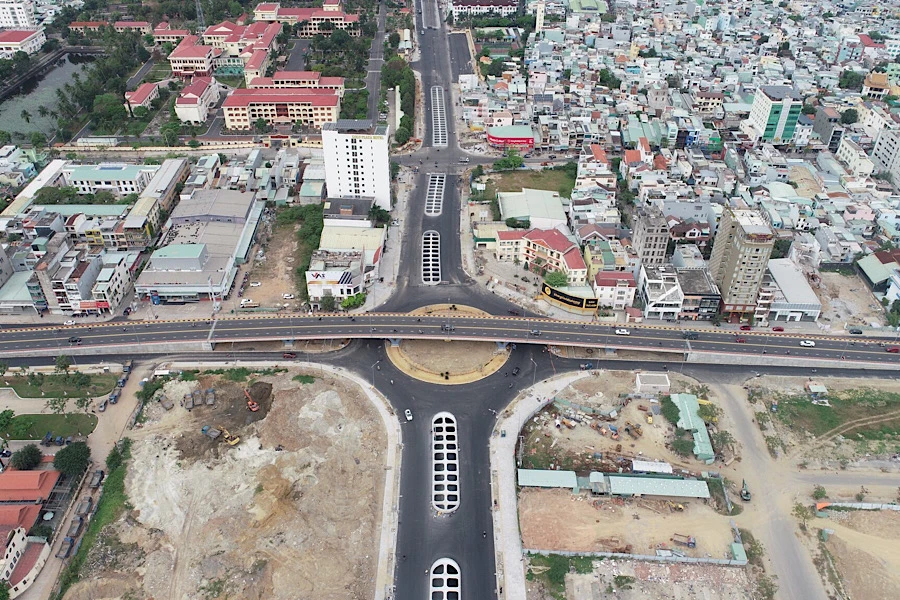 Nút giao thông phía Tây cầu Trần Thị Lý từng bị hối thúc tiến độ sẽ được khánh thành vào ngày 28-3. Ảnh: BT.