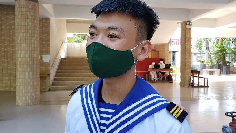 "Lúc đầu cảm thấy khá lo lắng. Sau khi được xét nghiệm COVID-19, em đã an tâm hơn và sẵn sàng bước vào kỳ thi sắp tới"- chiến sĩ Trần Đức Tuấn, Tiểu đoàn 353, Vùng 3 Hải Quân chia sẻ. Ảnh: T.AN