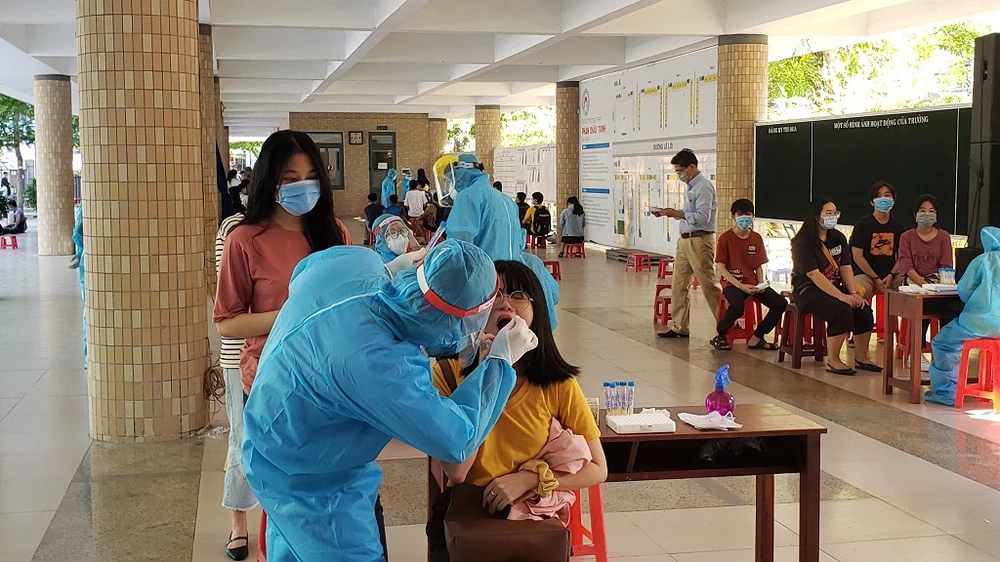Ông Trần Nguyễn Minh Thành, Phó giám đốc Sở GD&ĐT TP Đà Nẵng, cho biết hôm nay sở tiến hành xét nghiệm cho toàn bộ thí sinh dự thi tại 24 điểm thi, chia hai buổi sáng và chiều. Riêng thí sinh F1, F2 và trong khu vực cách ly y tế sẽ được y tế địa phương lấy mẫu tại nơi các em đang ở. Ngày mai các cán bộ, giáo viên, nhân viên làm nhiệm vụ coi thi sẽ tiến hành xét nghiệm.