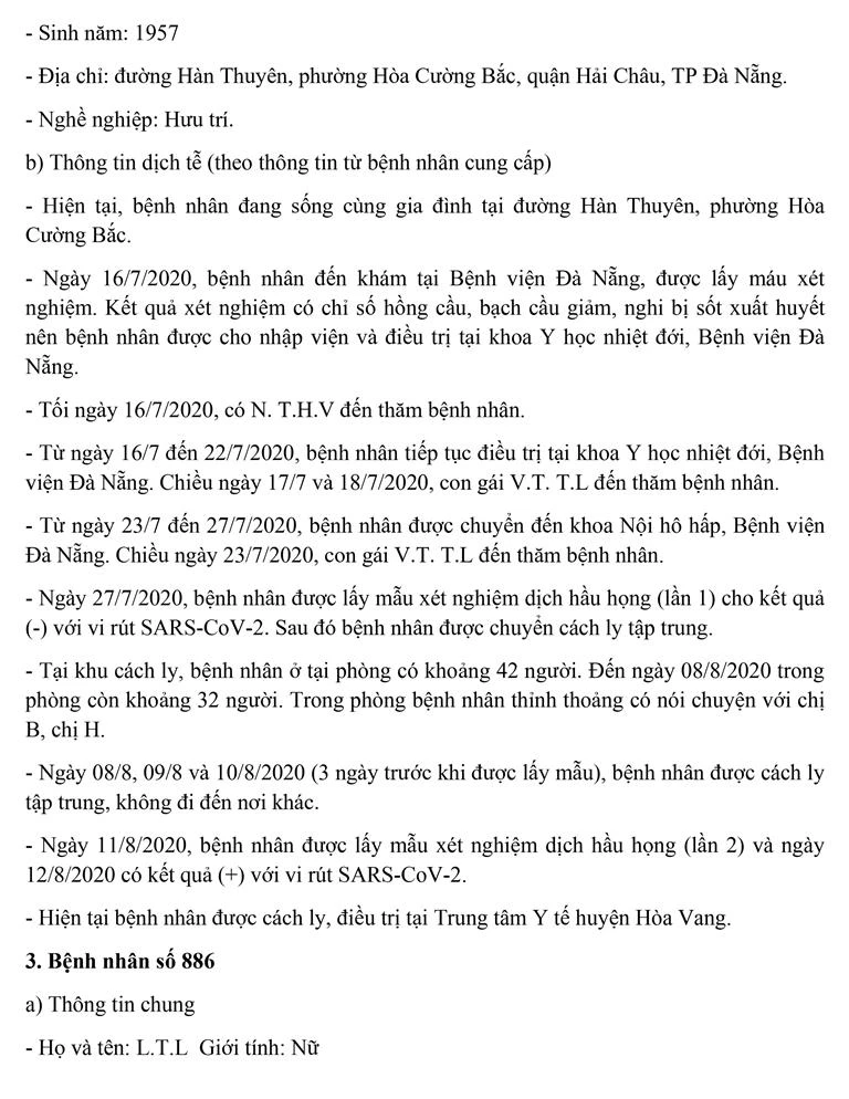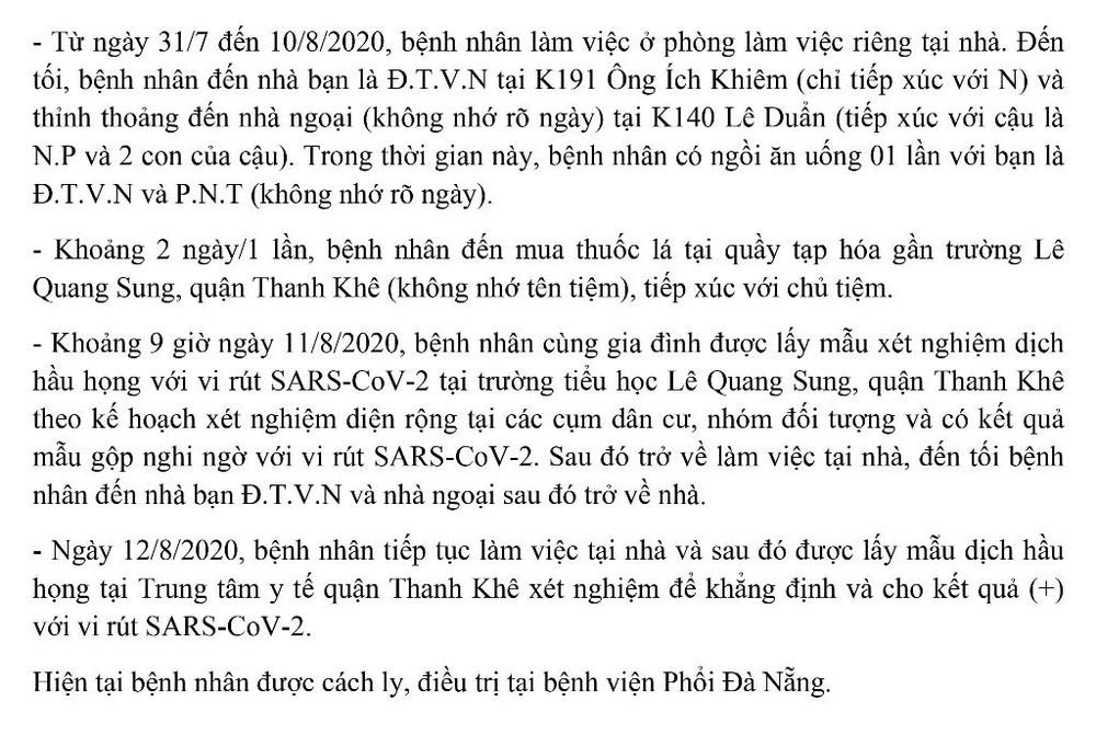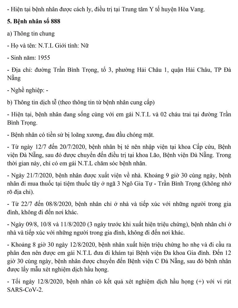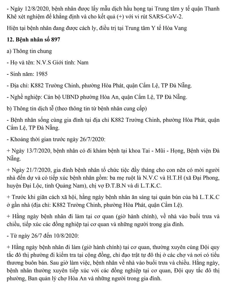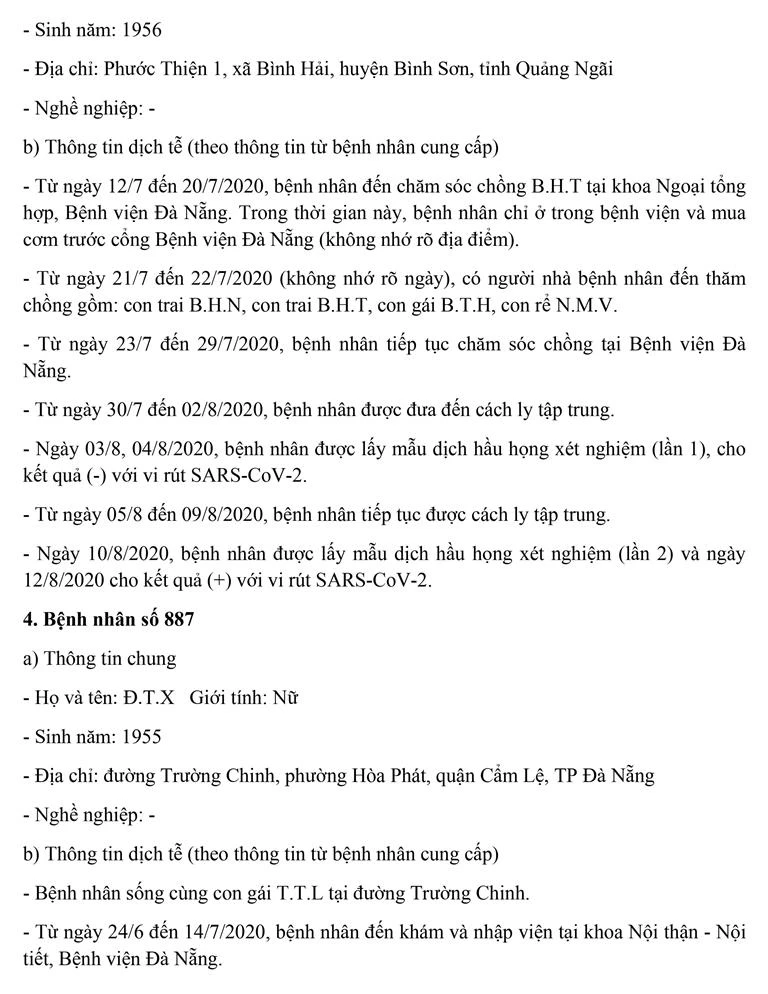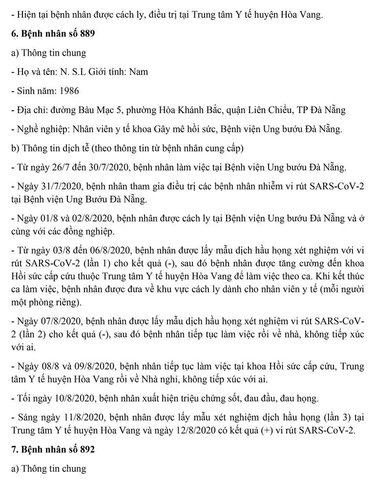 Đặc biệt trong số này, các bệnh nhân số 892, 893, 894, 895, 896 là những người trong cùng một gia đình, ngụ K113 Trần Xuân Lê (phường Hòa Khê, quận Thanh Khê, Đà Nẵng).