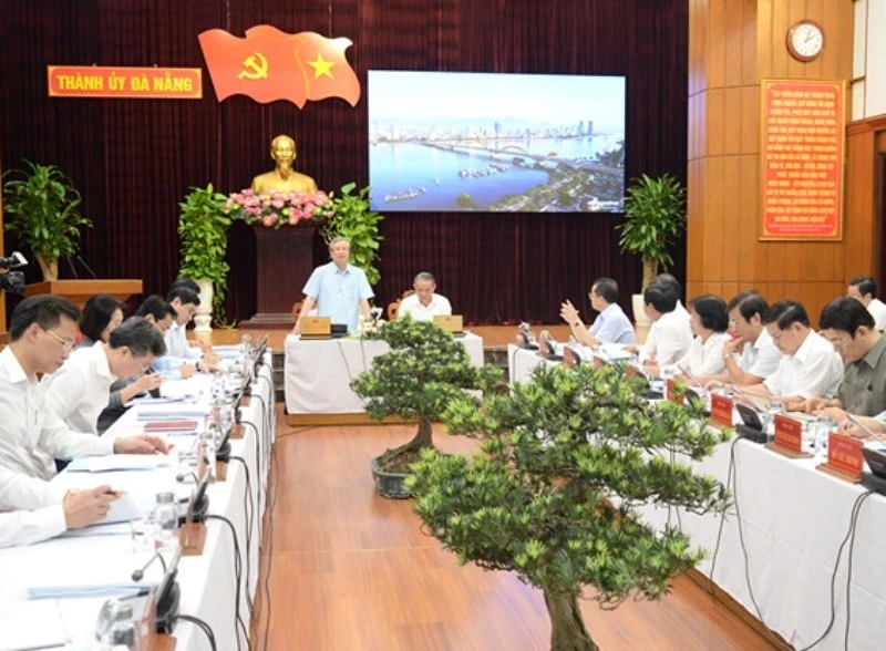 Thường trực Ban Bí thư Trần Quốc Vượng làm việc với Thành ủy Đà Nẵng. Ảnh: TH