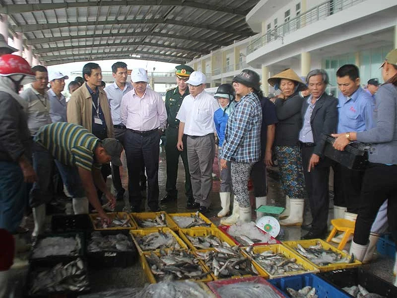 Lãnh đạo TP Đà Nẵng kiểm tra vấn đề ATTP tại cảng cá Thọ Quang. Ảnh: LÊ PHI