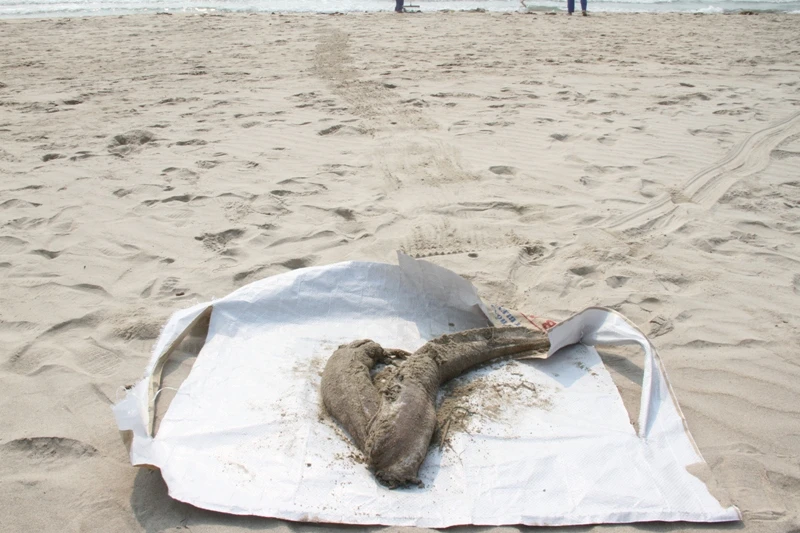 Chi cục Thủy sản Đà Nẵng đã kiểm tra tình trạng cá chết dọc bãi biển. Ảnh: TT
