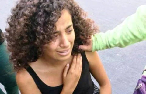 Chị Alaa Mohammad Abdu Ali Aldoh khóc nức nở sau khi bị cướp giật tại quận 1.