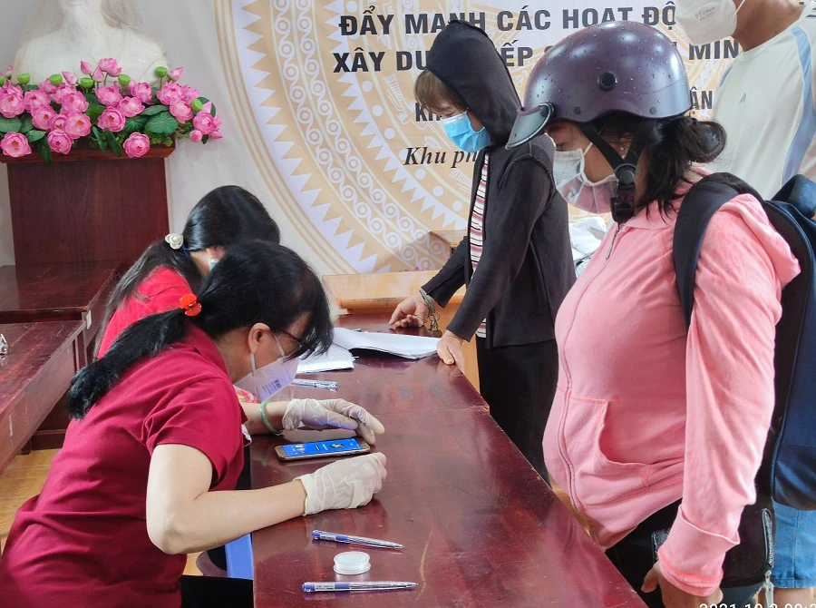 Người dân ở phường 5, quận Gò Vấp nhận hỗ trợ đợt 3. Ảnh: NGUYỄN HIỀN