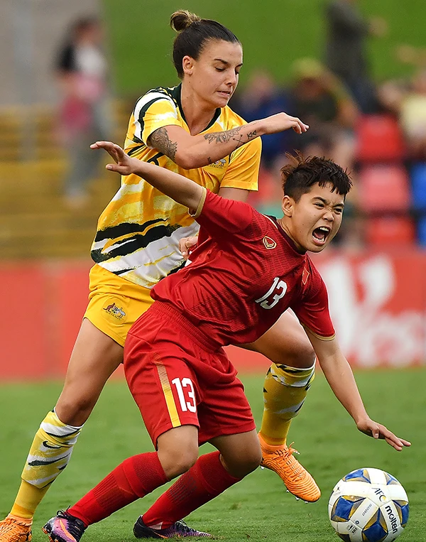Nữ tuyển thủ Vạn Sự tại lượt đi trước cầu thủ Úc hơn về nhiều mặt. Ảnh: AFC NEWS