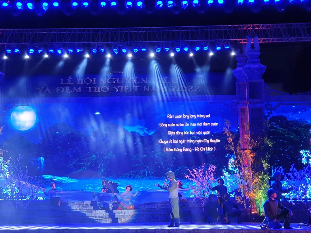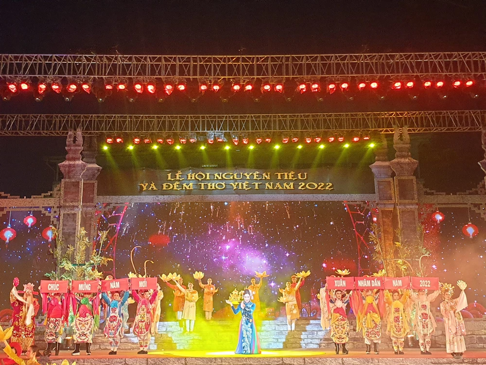 Tối 14-2, Ban tổ chức kỉ niệm các ngày lễ lớn TP.HCM cùng Sở Văn hoá và Thể thao TP.HCM đã tổ chức chương trình nghệ thuật lễ hội Nguyên tiêu và Đêm thơ Việt Nam 2022 với chủ đề "Xuân" tại sân khấu phố Công viên Văn Lang, quận 5, TP.HCM.