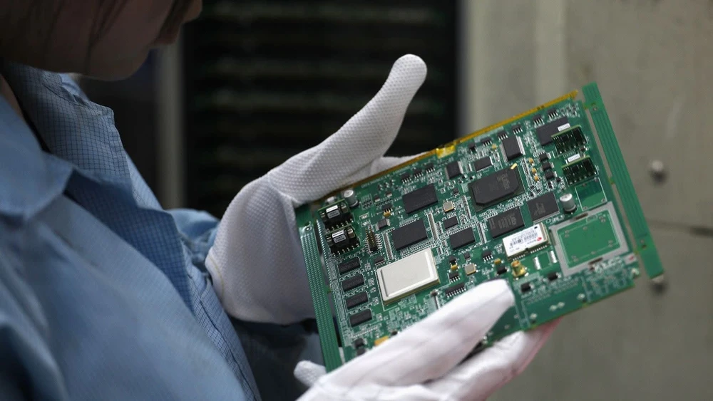 Kiểm tra bo mạch chủ tại một nhà máy Trung Quốc. Ảnh: REUTERS