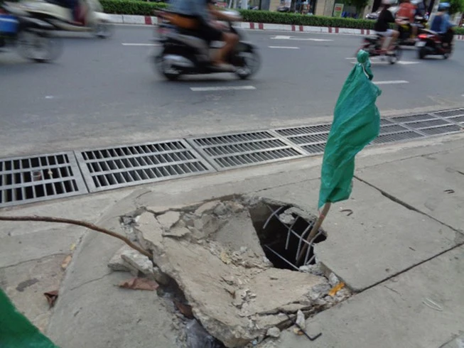 Ngày 31-8, báo Pháp Luật TP.HCMcó phản ánh trên đường Đồng Khởi, khu phố 3, phường Tân Hiệp, TP Biên Hòa, tỉnh Đồng Nai có nắp mương hỏng nguy hiểm cho người đi đường. Người dân đã cắm cây tạm thời để cảnh báo nguy hiểm (ảnh trên).