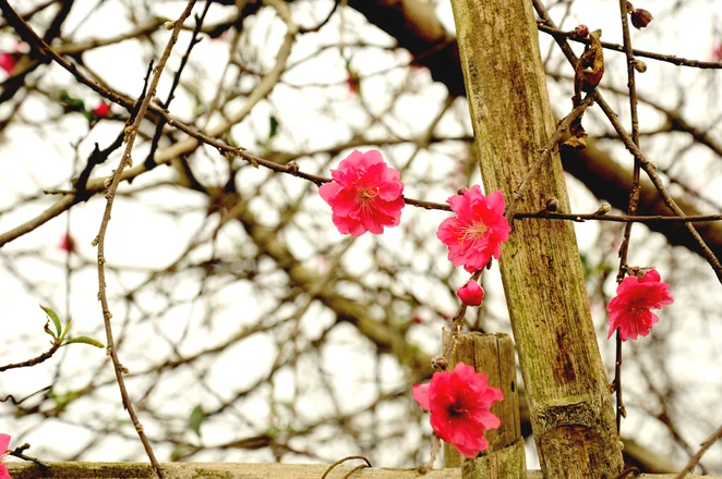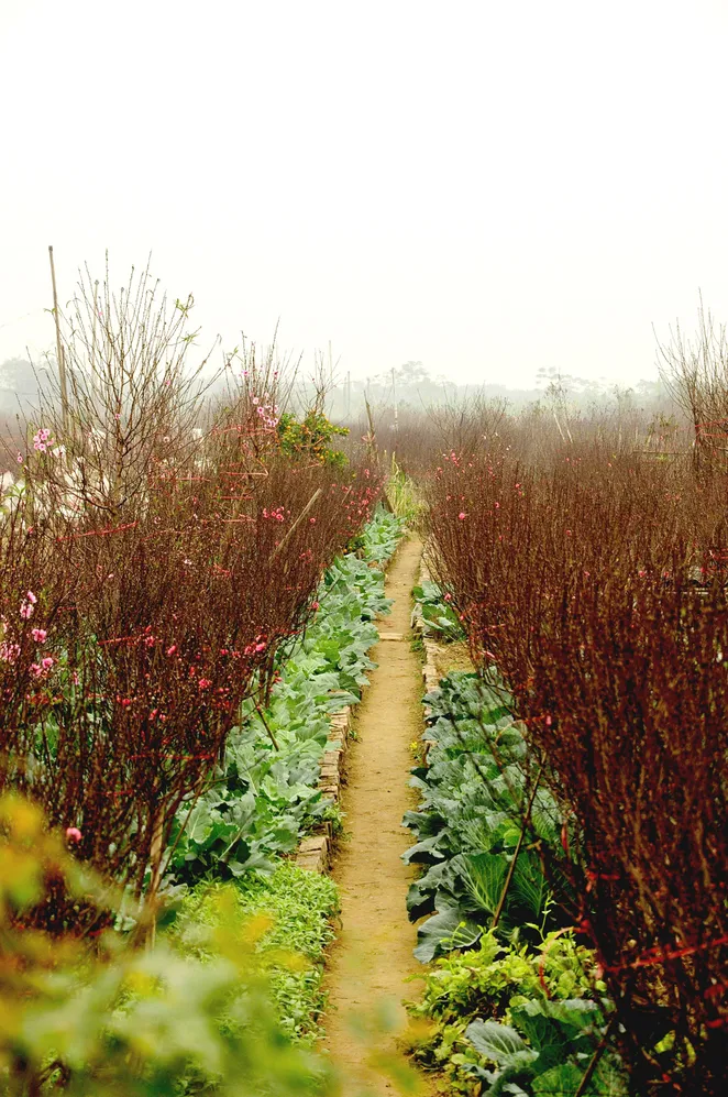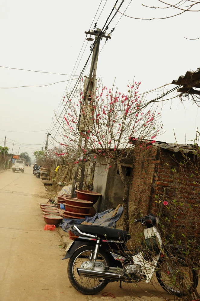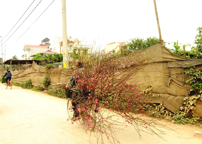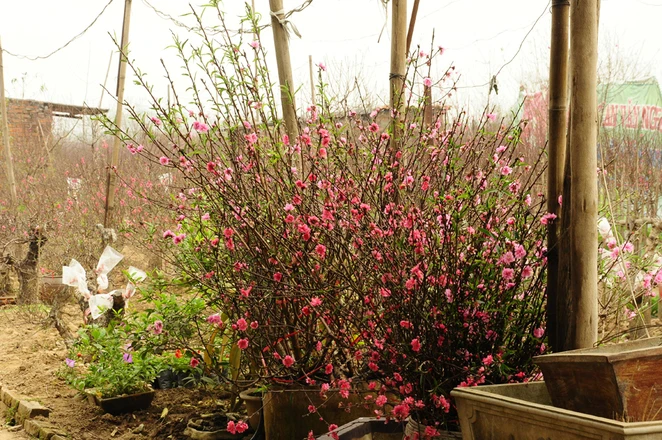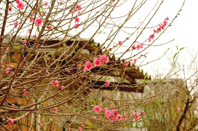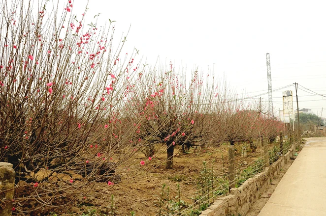 Những cây đào nở rực rỡ ngoài cổng, bên hàng rào các nhà vườn như báo hiệu mùa xuân đã đến.
