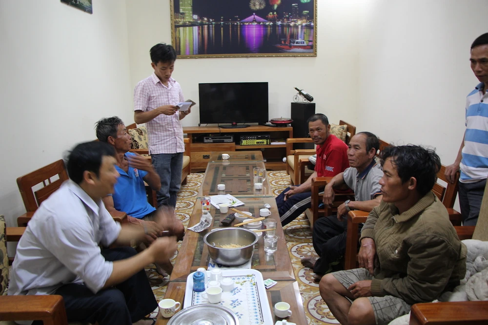 Bốn ngư dân thoát chết sau khi tàu chìm trên vùng biển Tiên Sa. Ảnh: LÊ PHI
