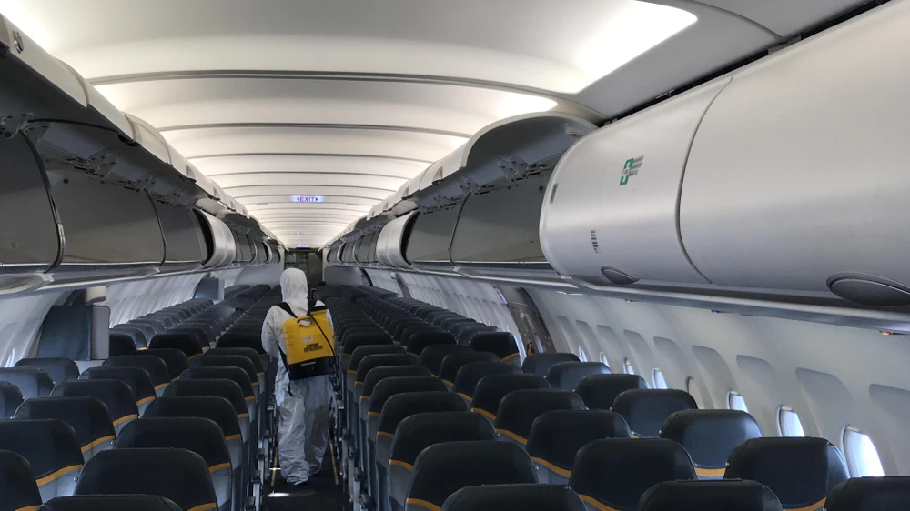 Khử trùng chuyến bay chở hành khách người Nhật bị COVID-19. Ảnh: TÂM NGUYỄN