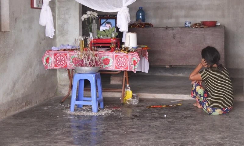 Người mẹ ngồi khóc bên bàn thờ con trai là Nguyễn Gia Tiến (học lớp 12)