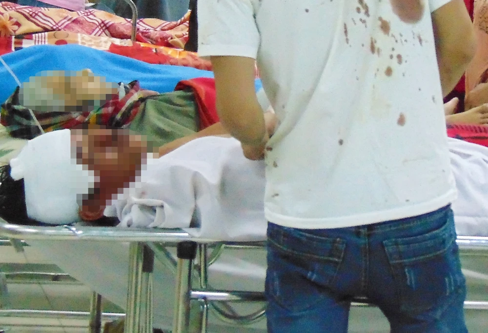 Nạn nhân tên VVTM (30 tuổi, ở Long An). Một thanh niên mặc áo dính đầy máu xưng là em nạn nhân cho biết anh M và bạn bè cùng xóm gầy sòng nhậu từ trưa đến tối. Sau khi sần sần, anh M và một bạn nhậu lời qua tiếng lại. Bất ngờ bạn nhậu cầm chai bia đánh mạnh lên trán anh M đến nỗi chai bia vỡ nát. Chưa hả giận, người này còn cầm dao chém khiến tay trái anh M bị đứt sâu và gãy xương. “Tôi vội vàng cõng anh M ra đường lớn rồi chuyển vô BV” – em nạn nhân cho biết thêm.